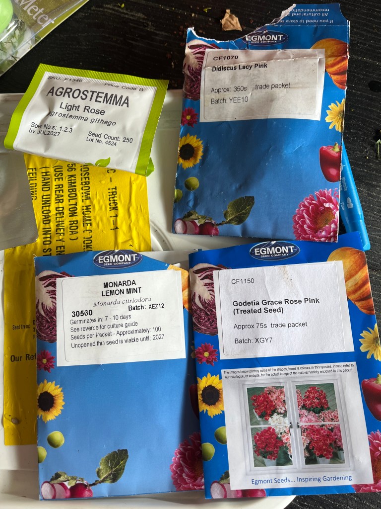 I’ve been planting seeds steadily through winter, but today was the first day I started planting more tender spring seeds. I got agrostemma, monarda, godetia and didiscus started.